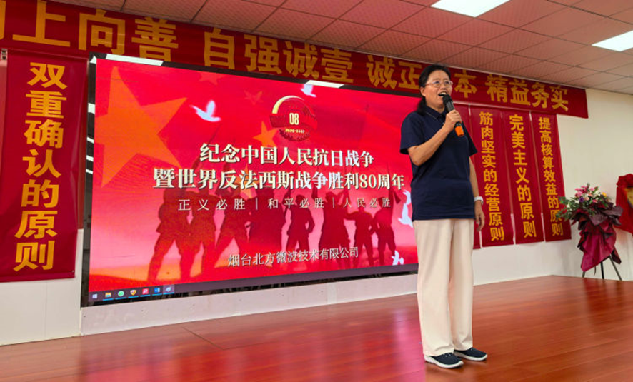 9月3日上午,紀念中國人民抗日戰(zhàn)爭暨世界反法西斯戰(zhàn)爭勝利80周年大會在北京隆重舉行。煙臺北方微波技術有限公司組織全體員工集中收看大會實況直播,認真學習領會習近平總書記重要講話精神。